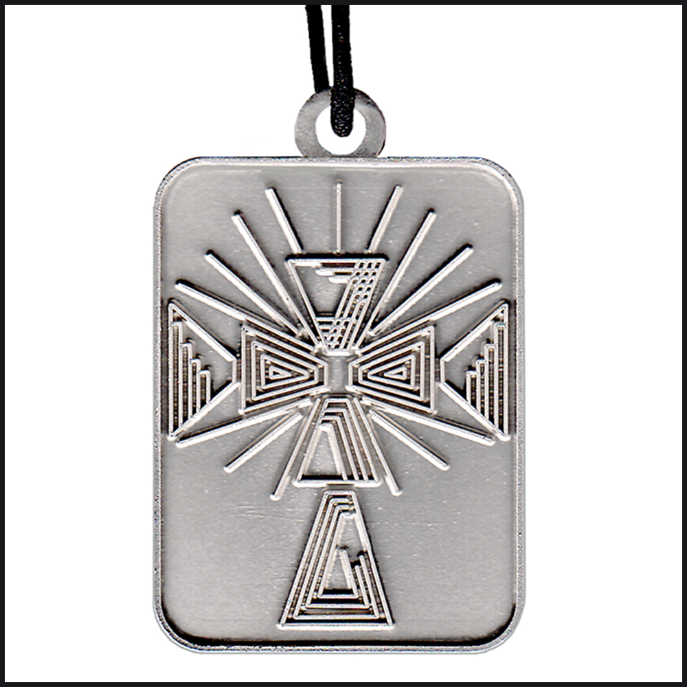 Eine mehrdeutige Kreuzform. Andeutung von Lichtstrahlen symbolisieren den Aufbruch ins Leben für junge Menschen.