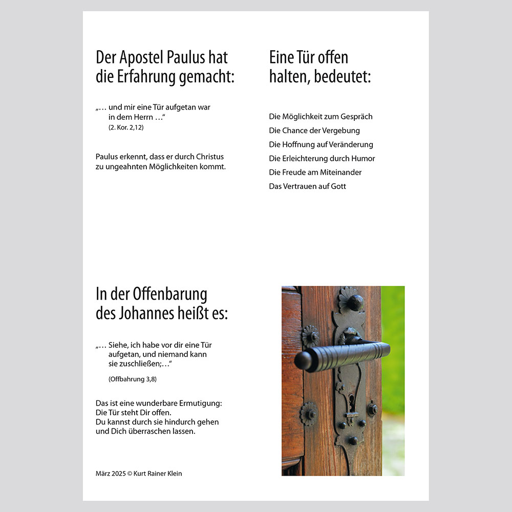 Ideal als Geschenk, Mitbringsel oder persönliche Ermutigung, das Herz und Tür öffnet.