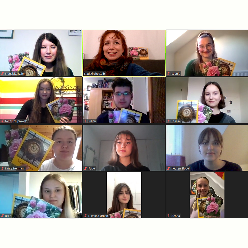 das P-Seminar "Schätze der Erinnerung" unter der Leitung von Pfarrerin Andrea Münster. Das Seminar